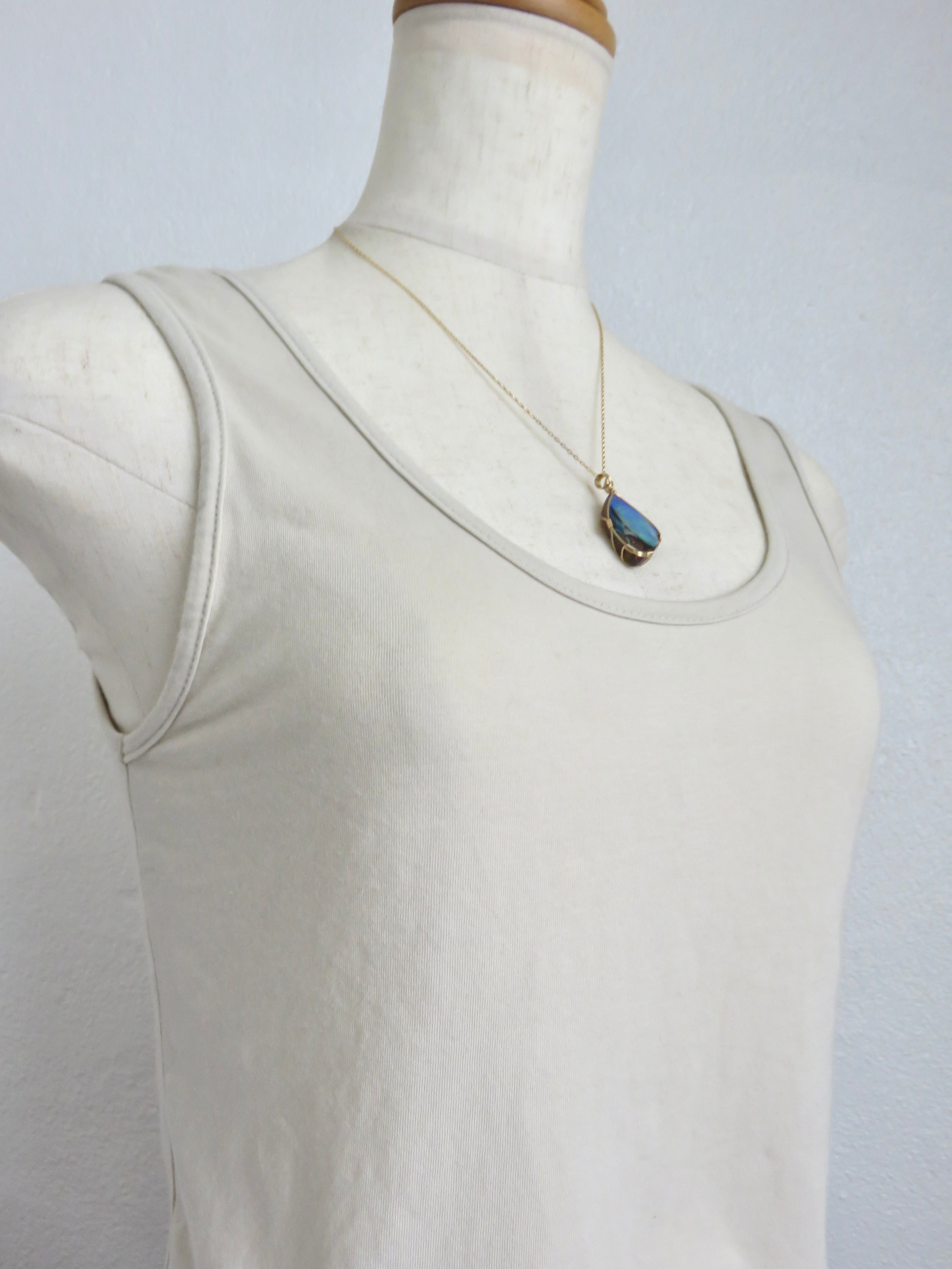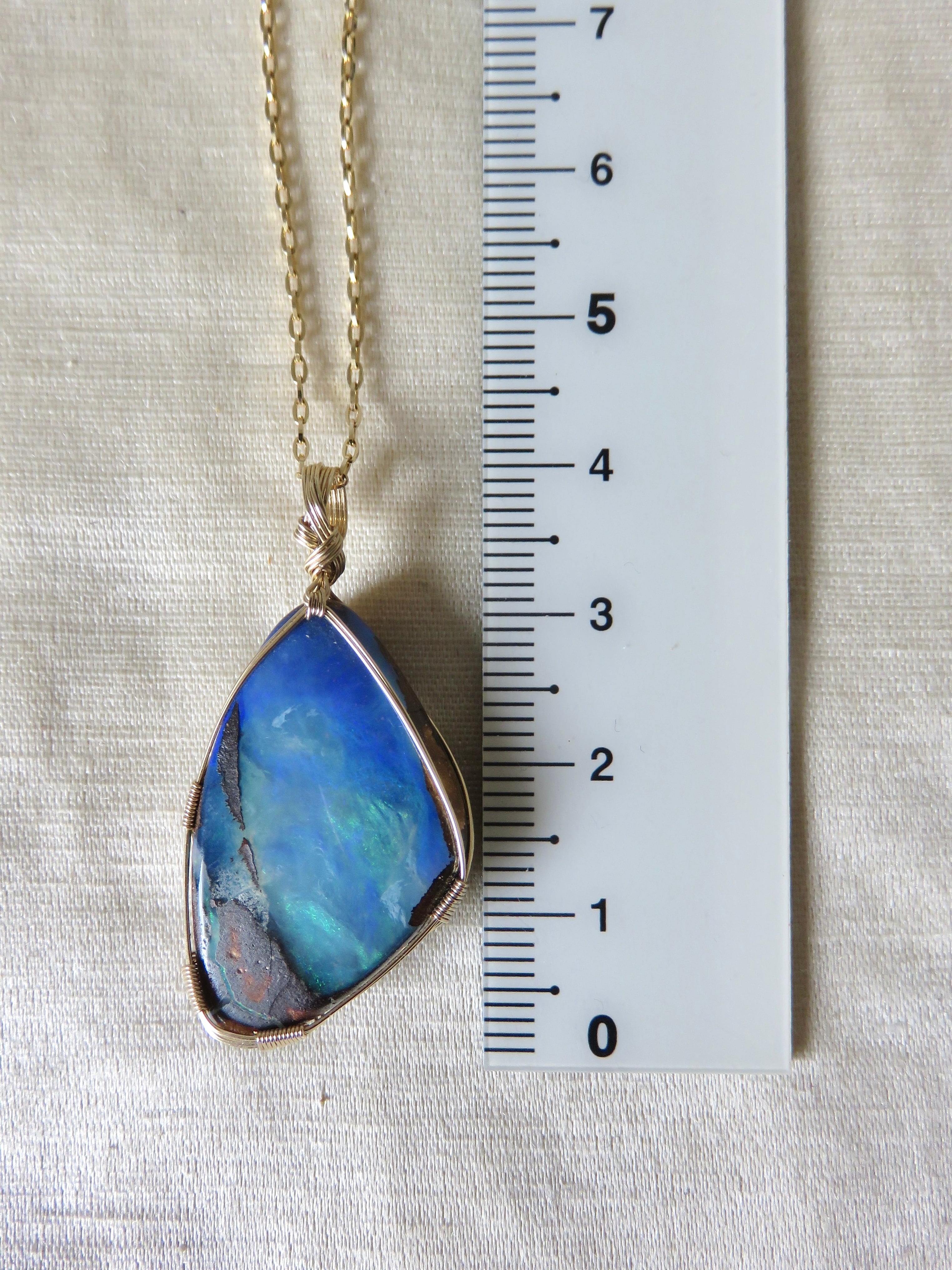 まるで青空を切り取ったような、、幻想的な美しさのオーストラリア産ボルダーオパールをシンプルな女神巻きペンダントトップに仕立てました。