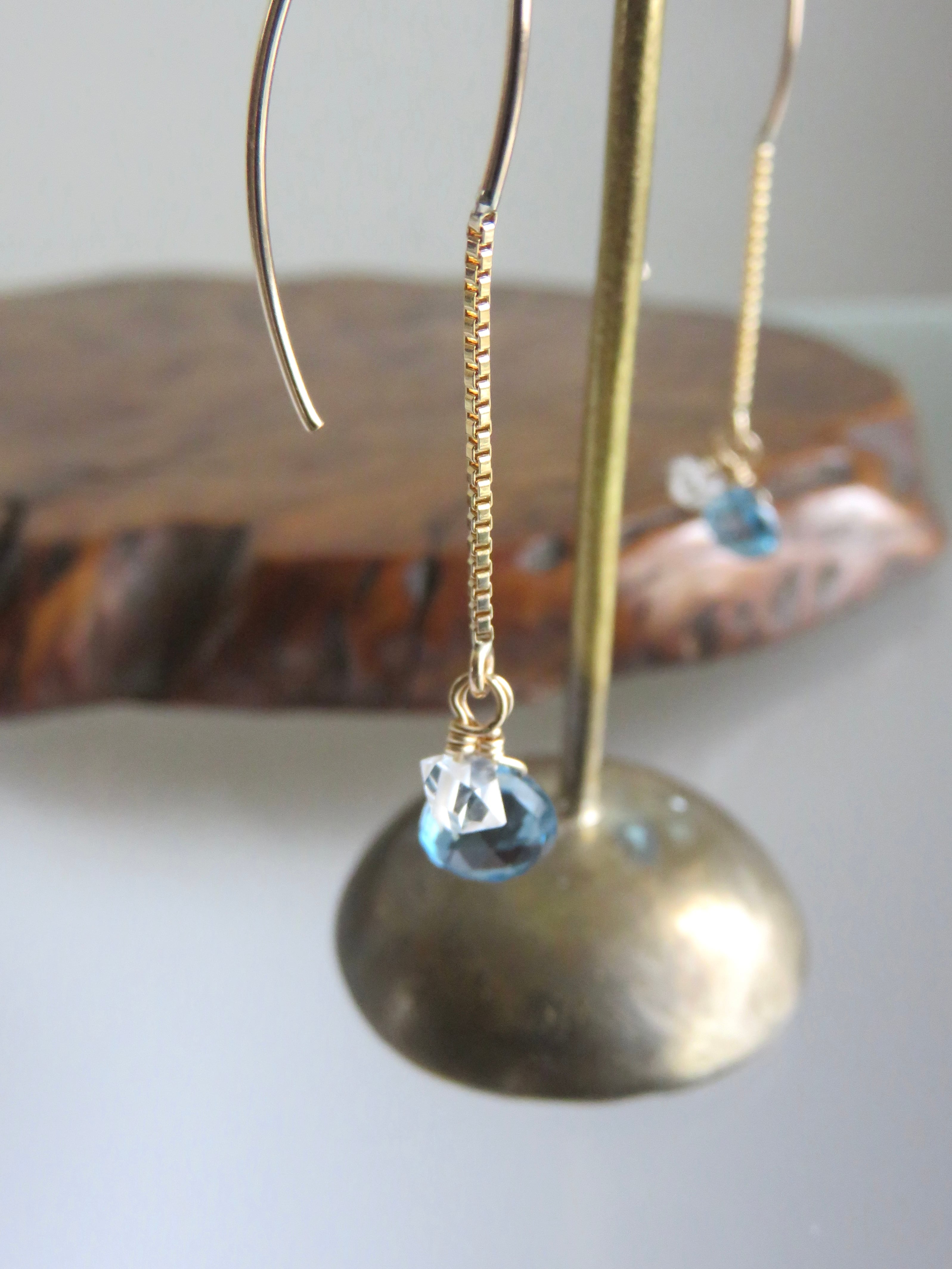 【11月誕生石】ロンドンブルートパーズとハーキマーのピアス
