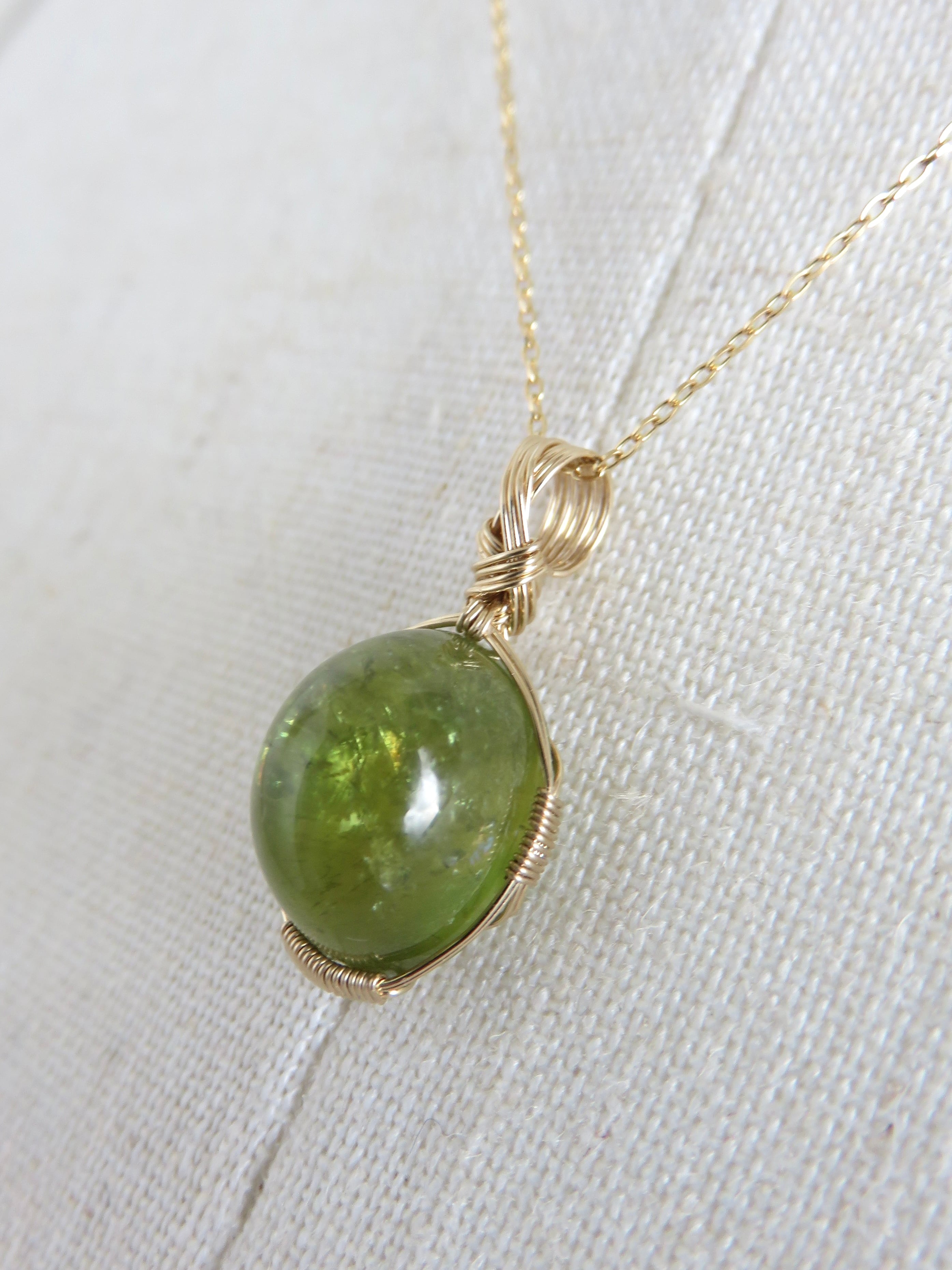 こちらのピースは鮮やかな若緑色と、ツルツルに磨かれた高さのあるカボションカットの中にキラキラのインクルージョンが輝く、なんだかとても生き生きとした、パワフルな可愛らしさのあるピースです。