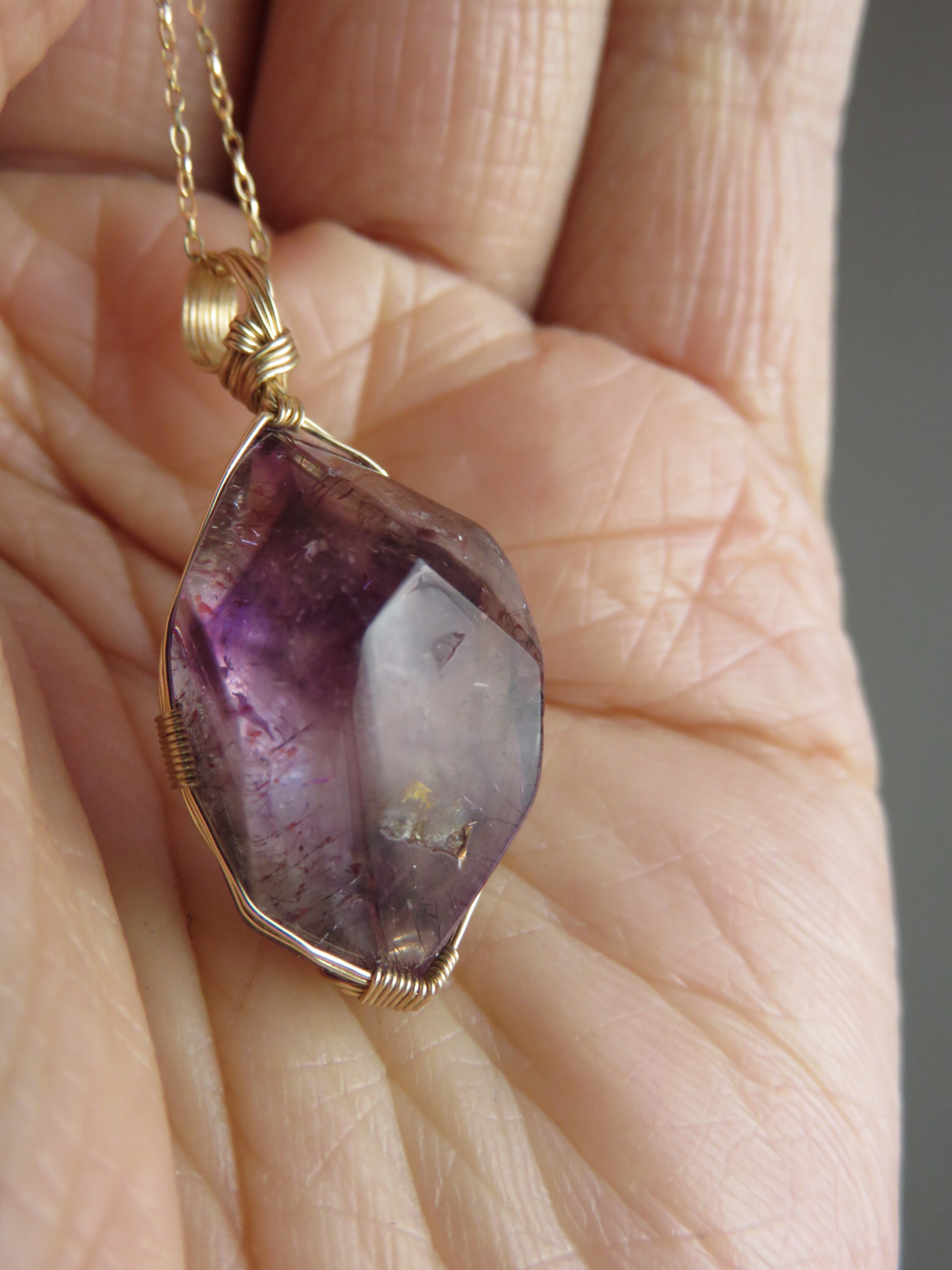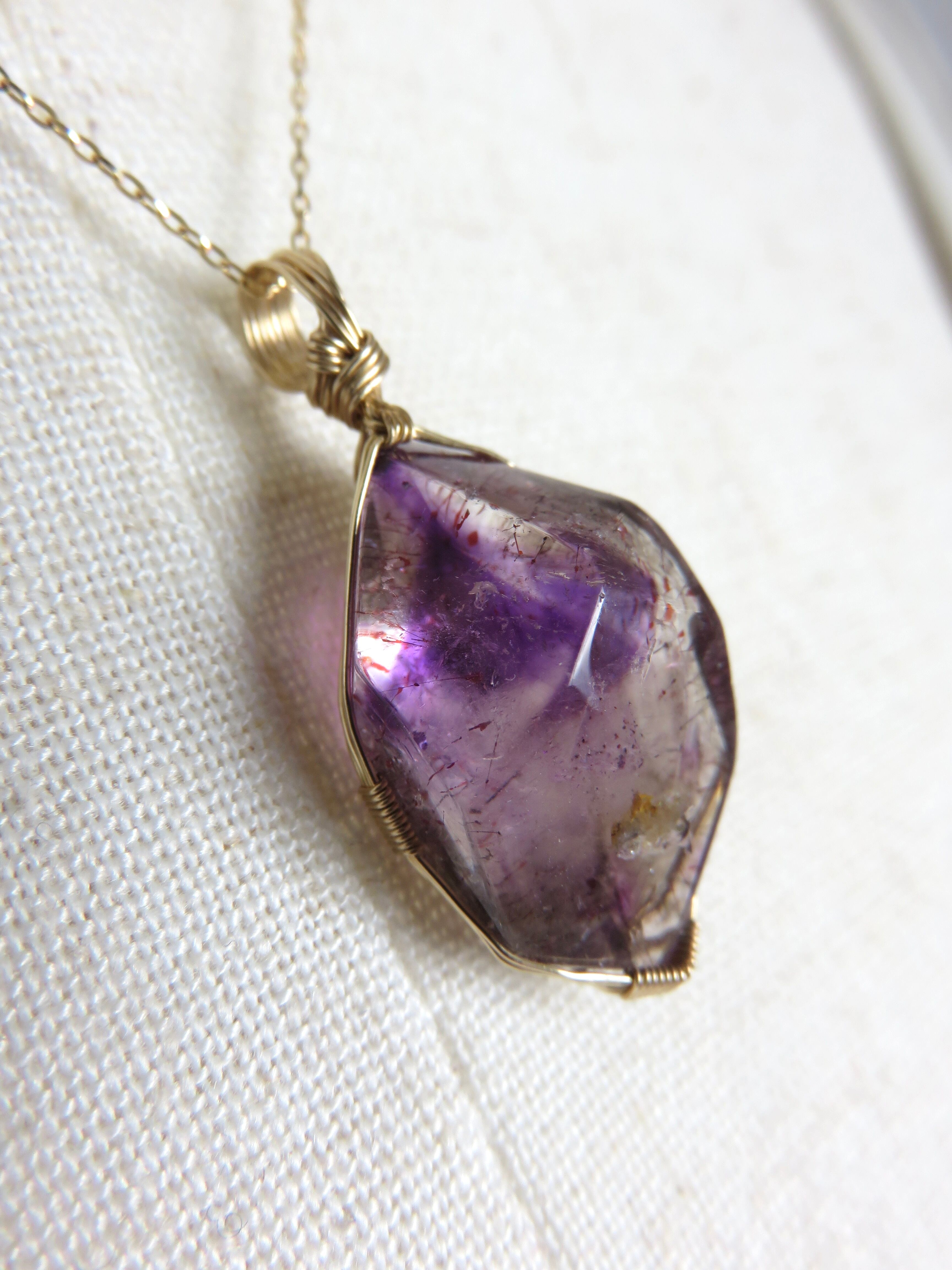 2月の誕生石アメジストを含んだ、ちょっと特別な、唯一無二の水晶のペンダントトップです。