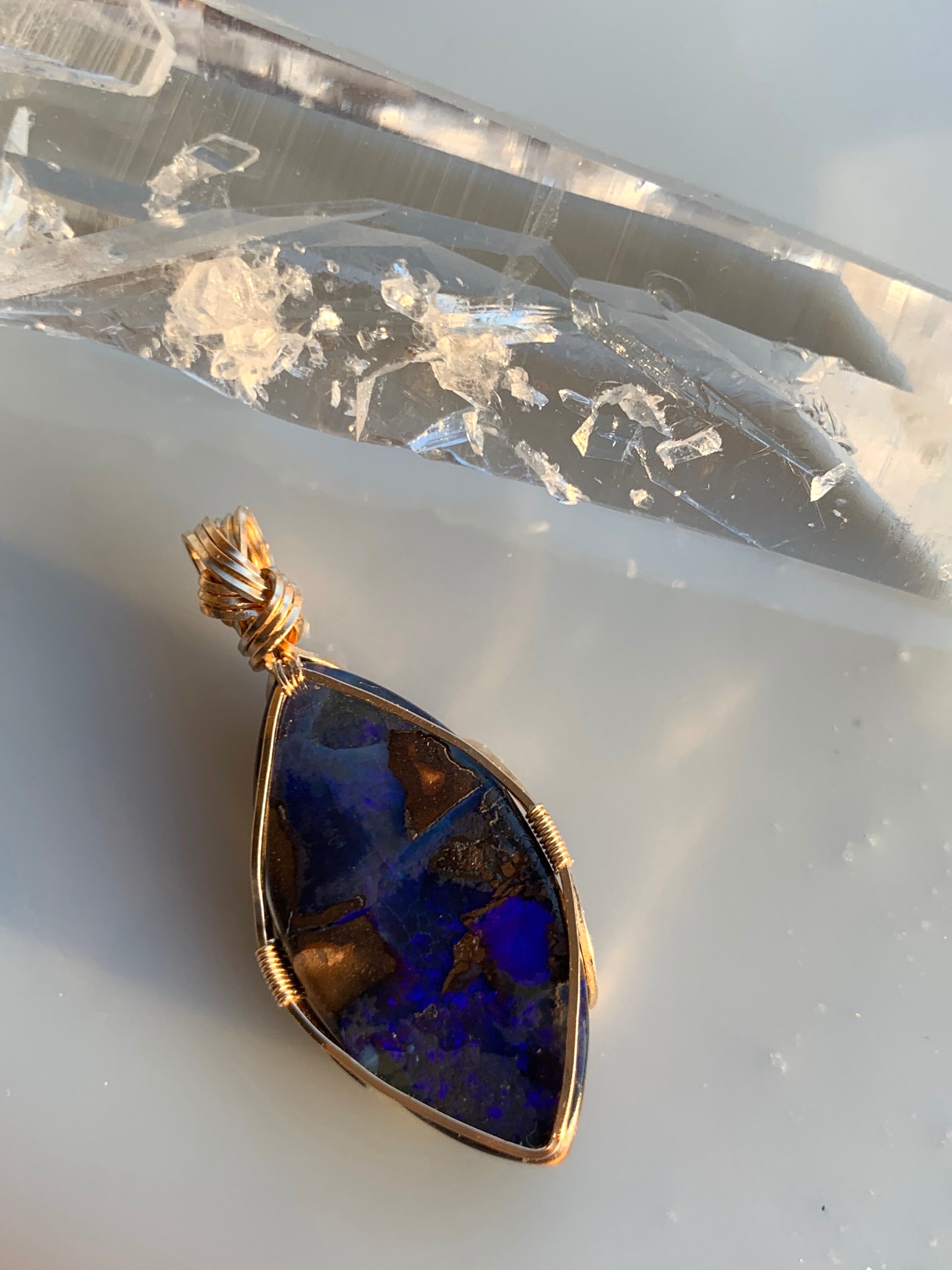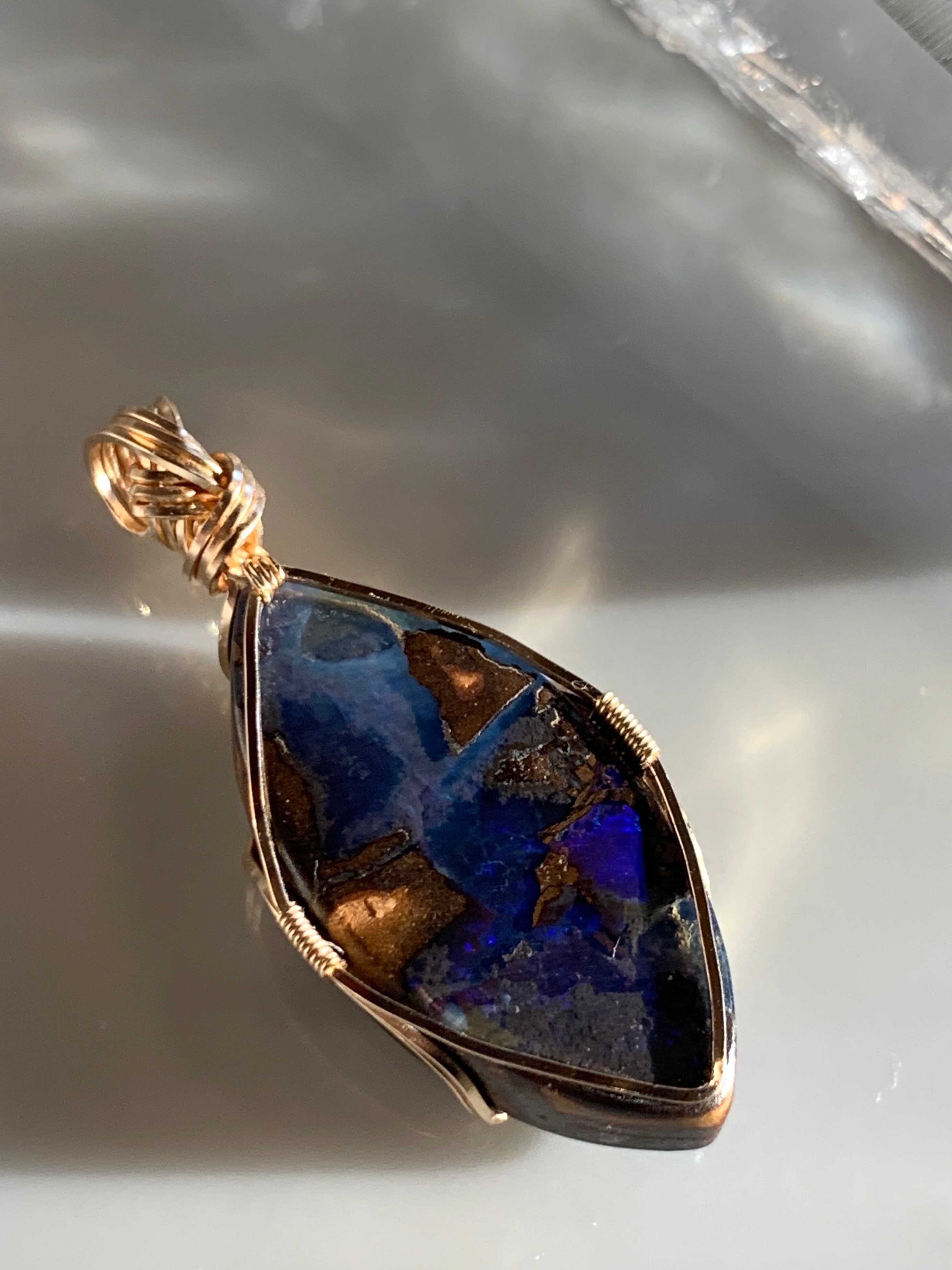 オーストラリア産ボルダーオパール女神巻きペンダントトップ