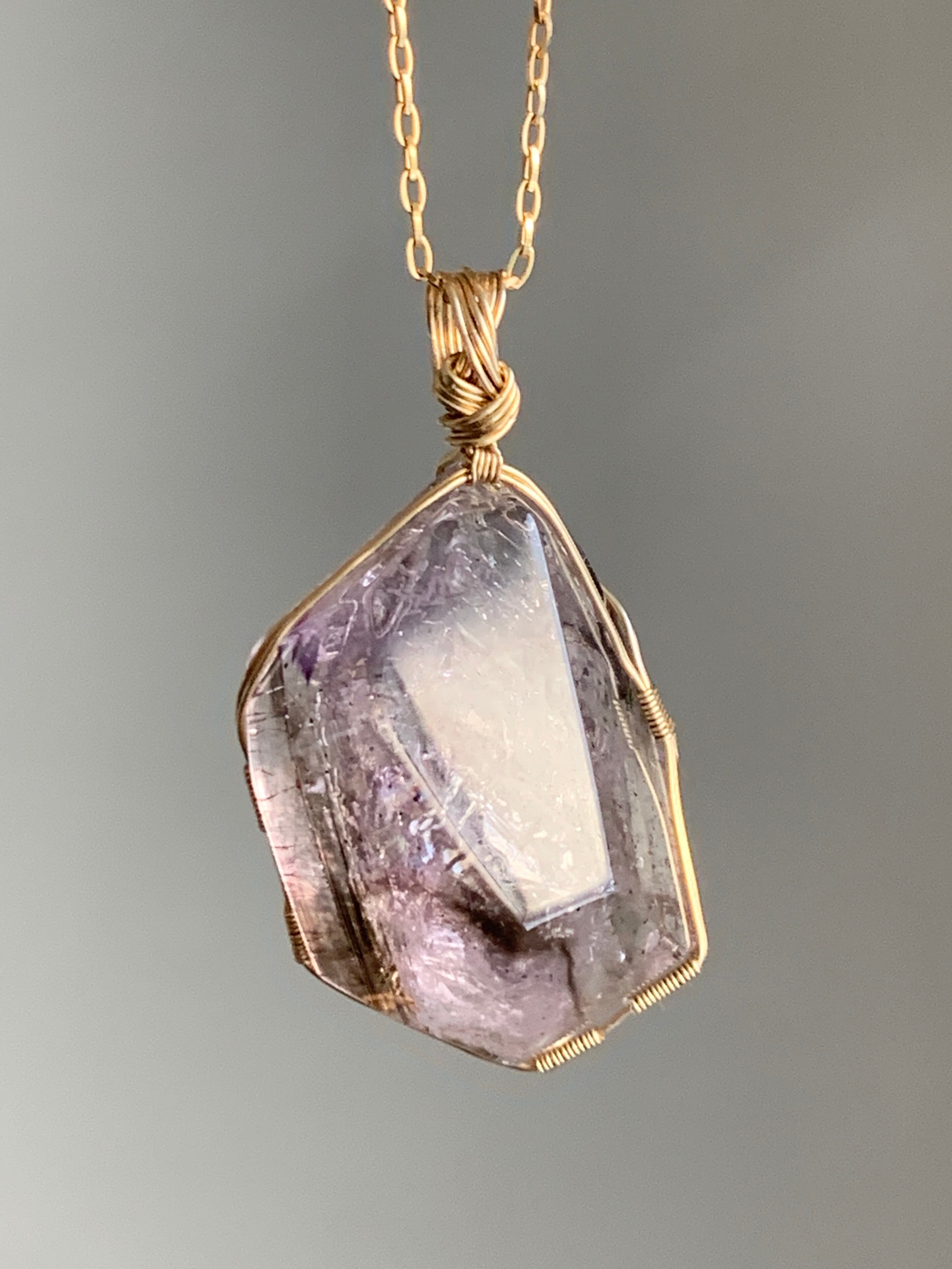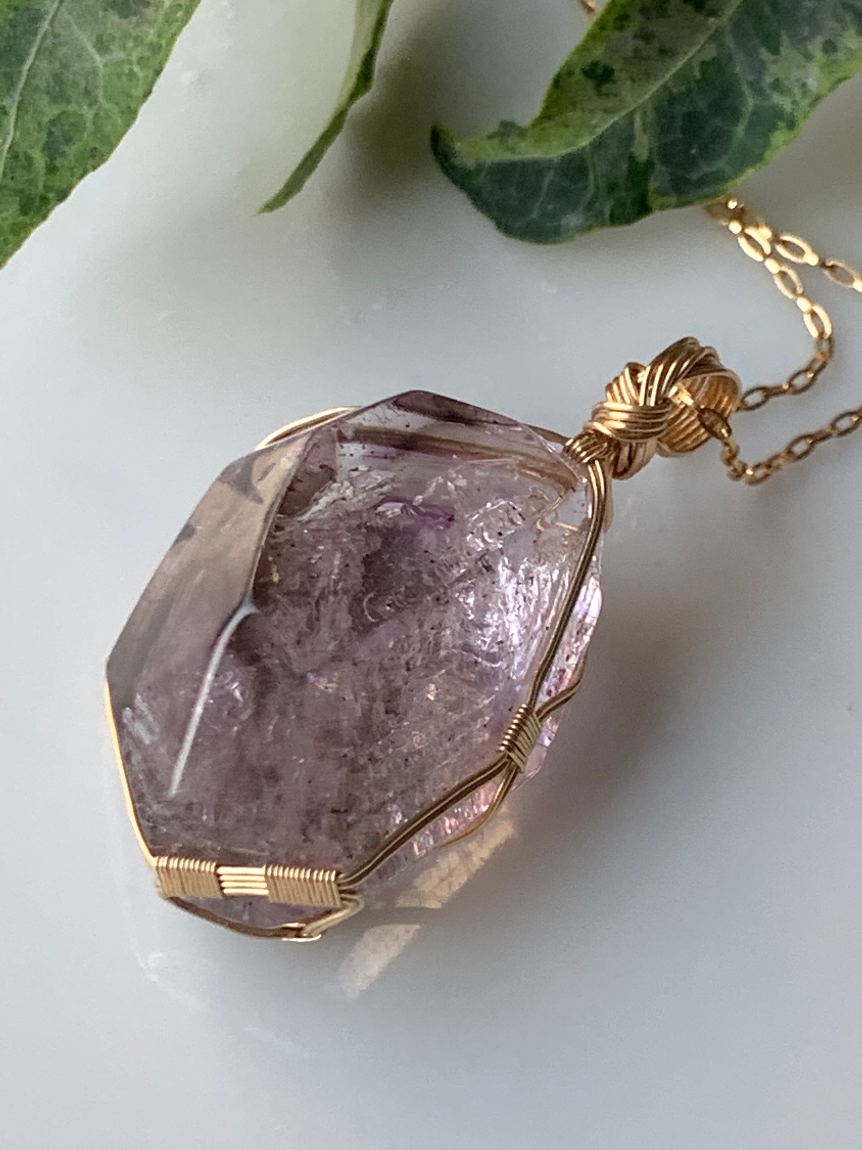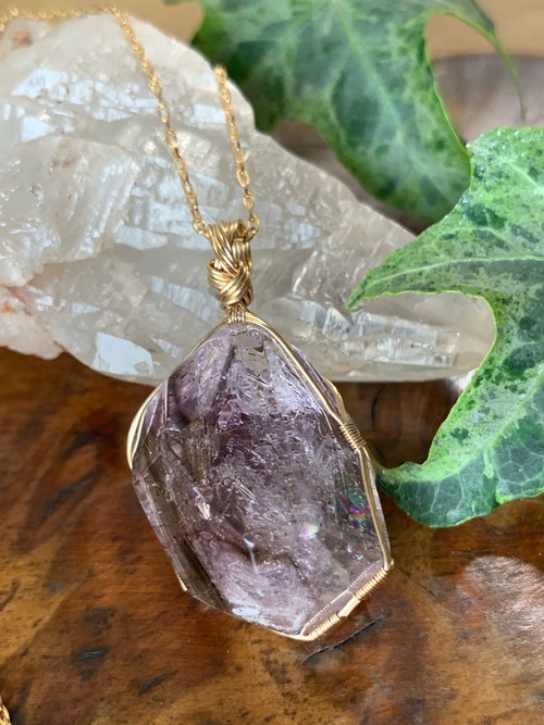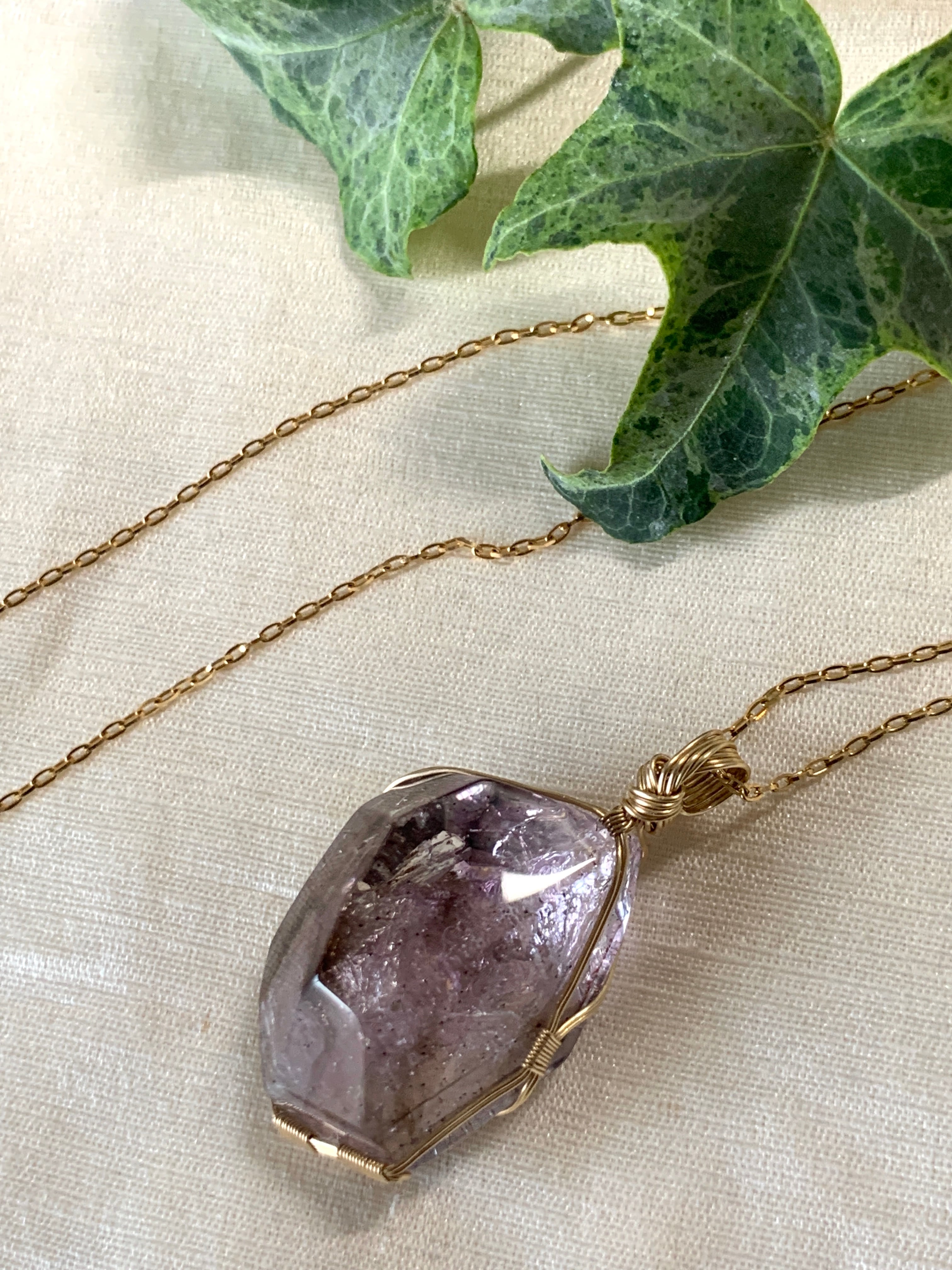 希少なブラジル産の水入りスーパーセブン(アメジストエレスチャル)を女神巻き®︎ペンダントトップに仕立てました。