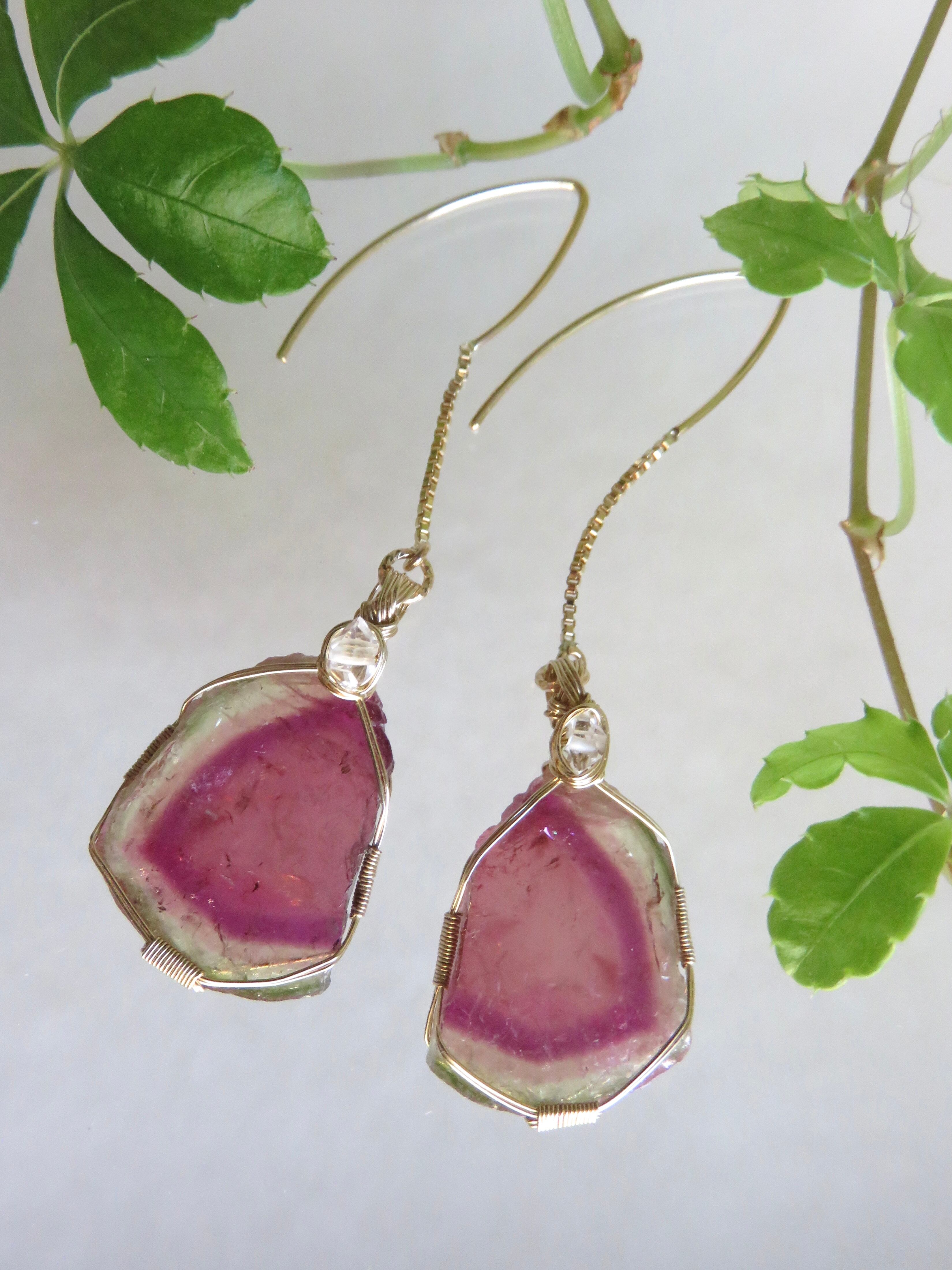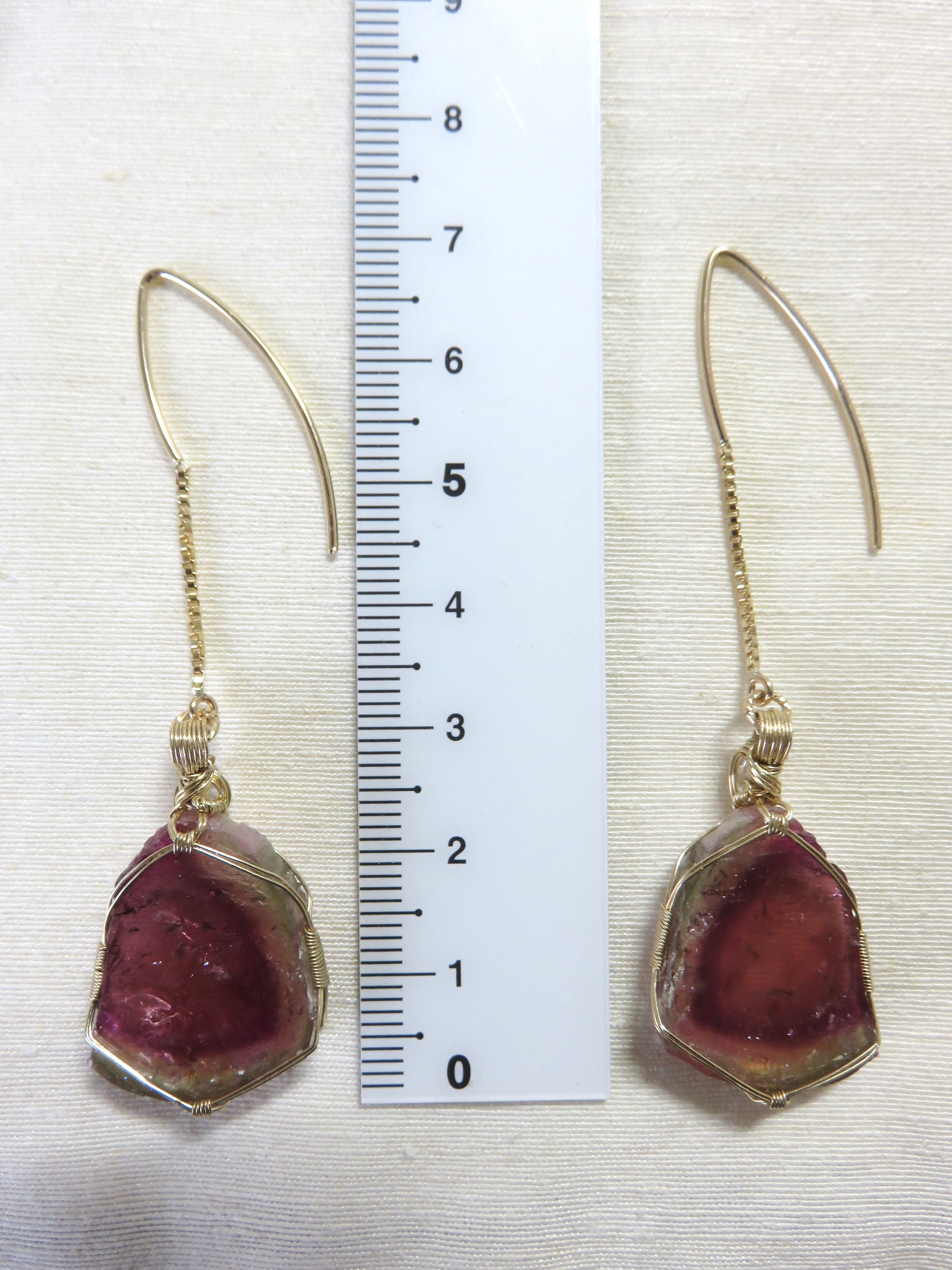 中心部分がピンク、外側が緑の「ウォーターメロン」と呼ばれるトルマリンのピアスです。