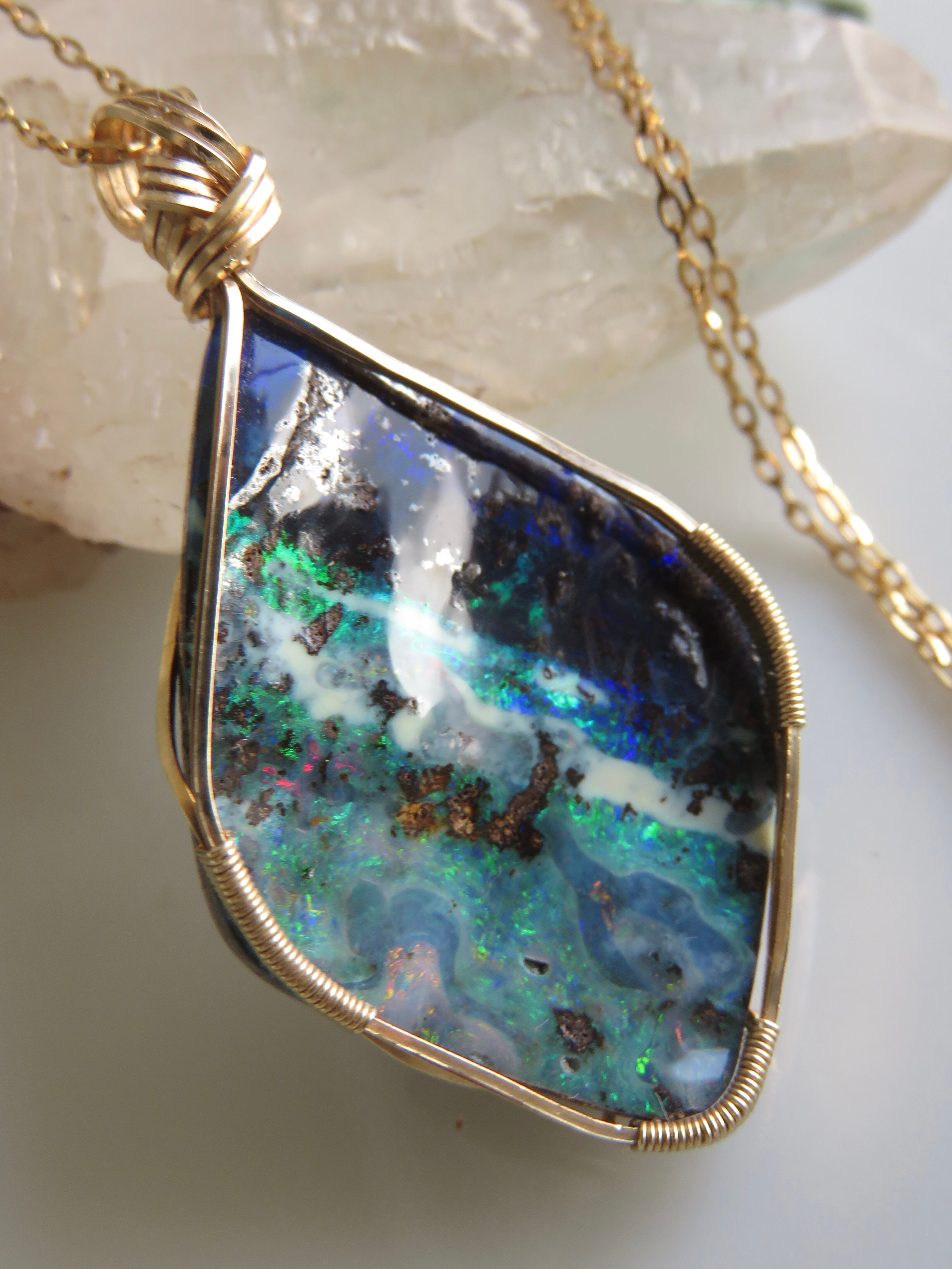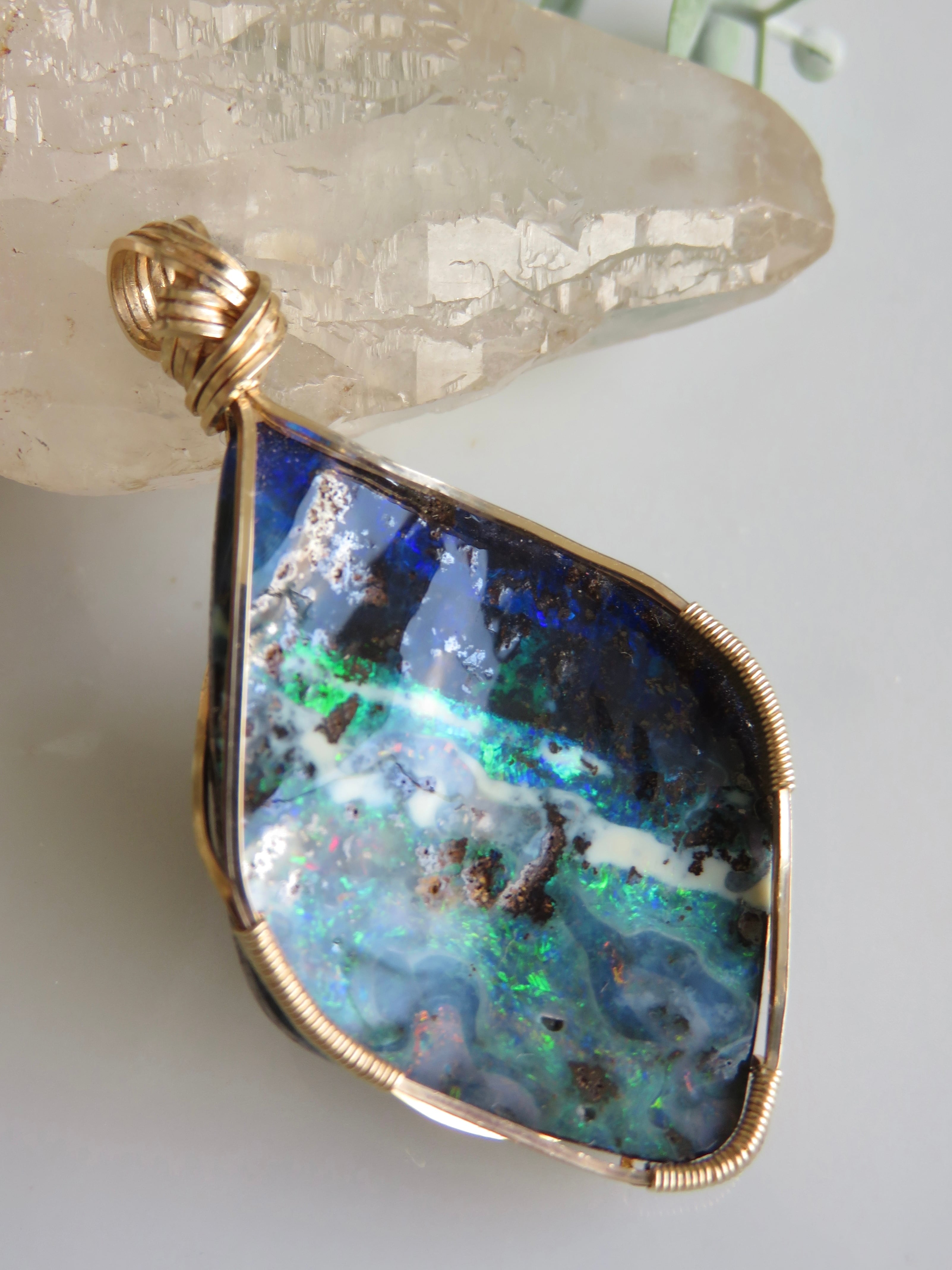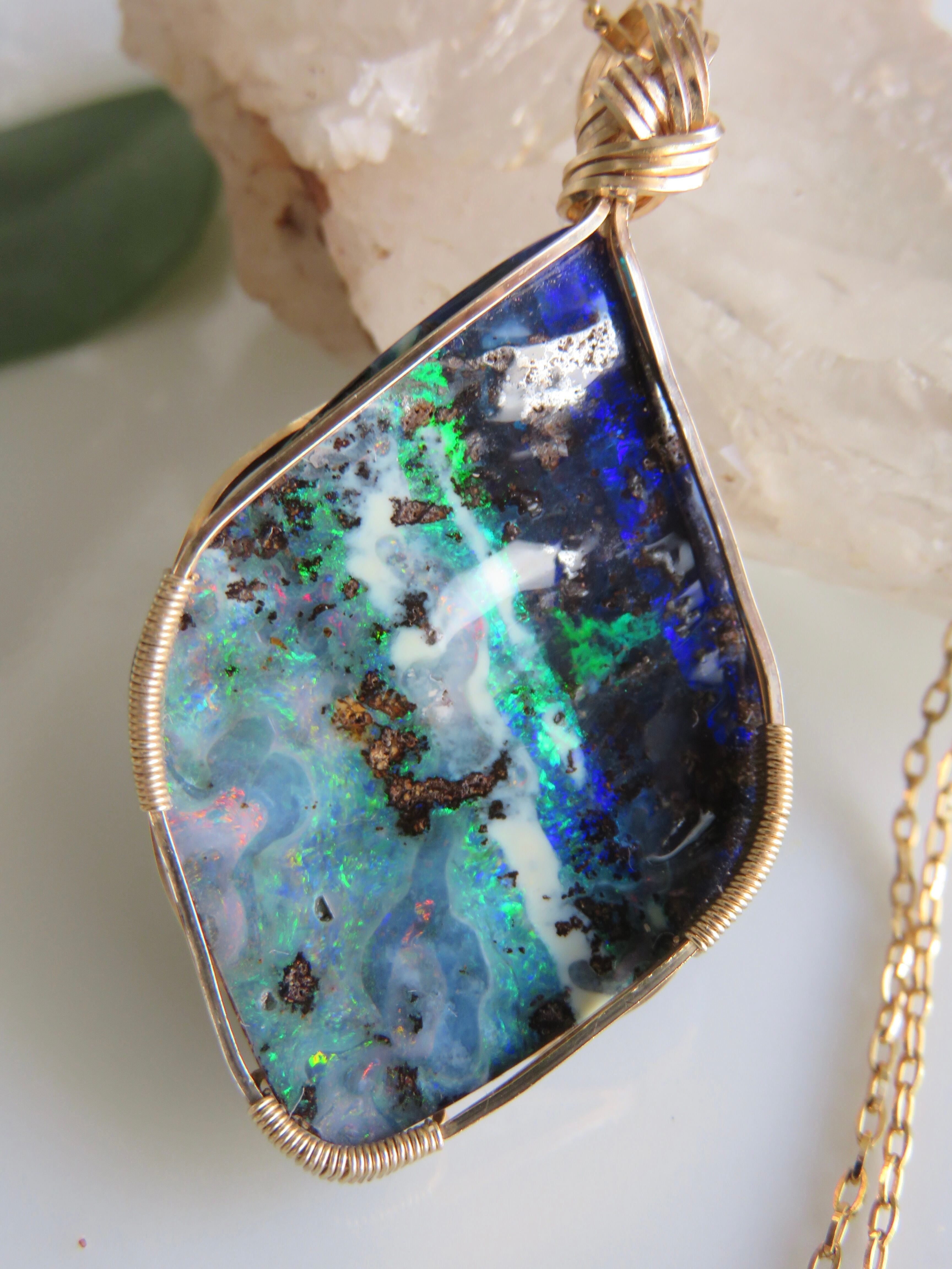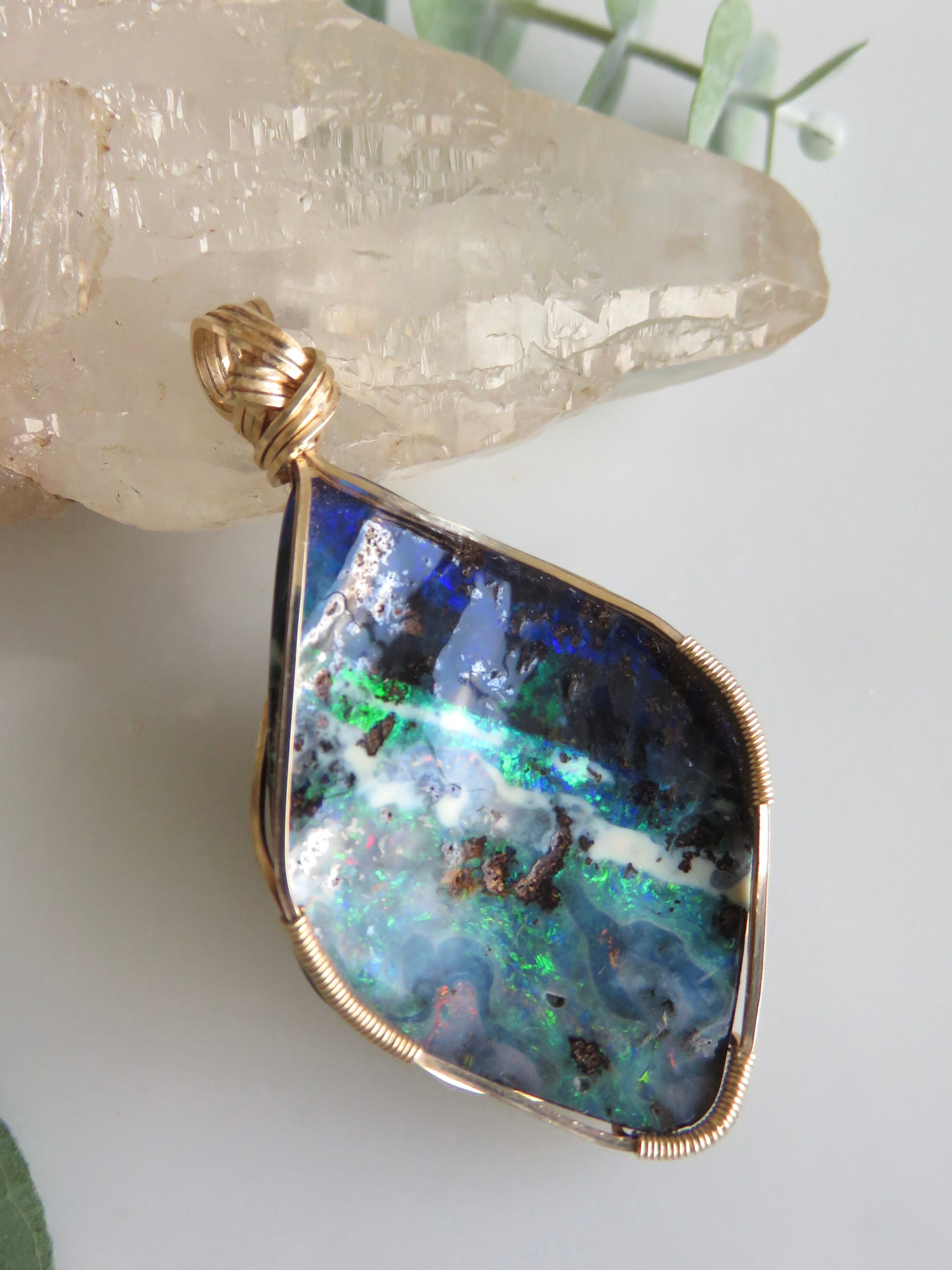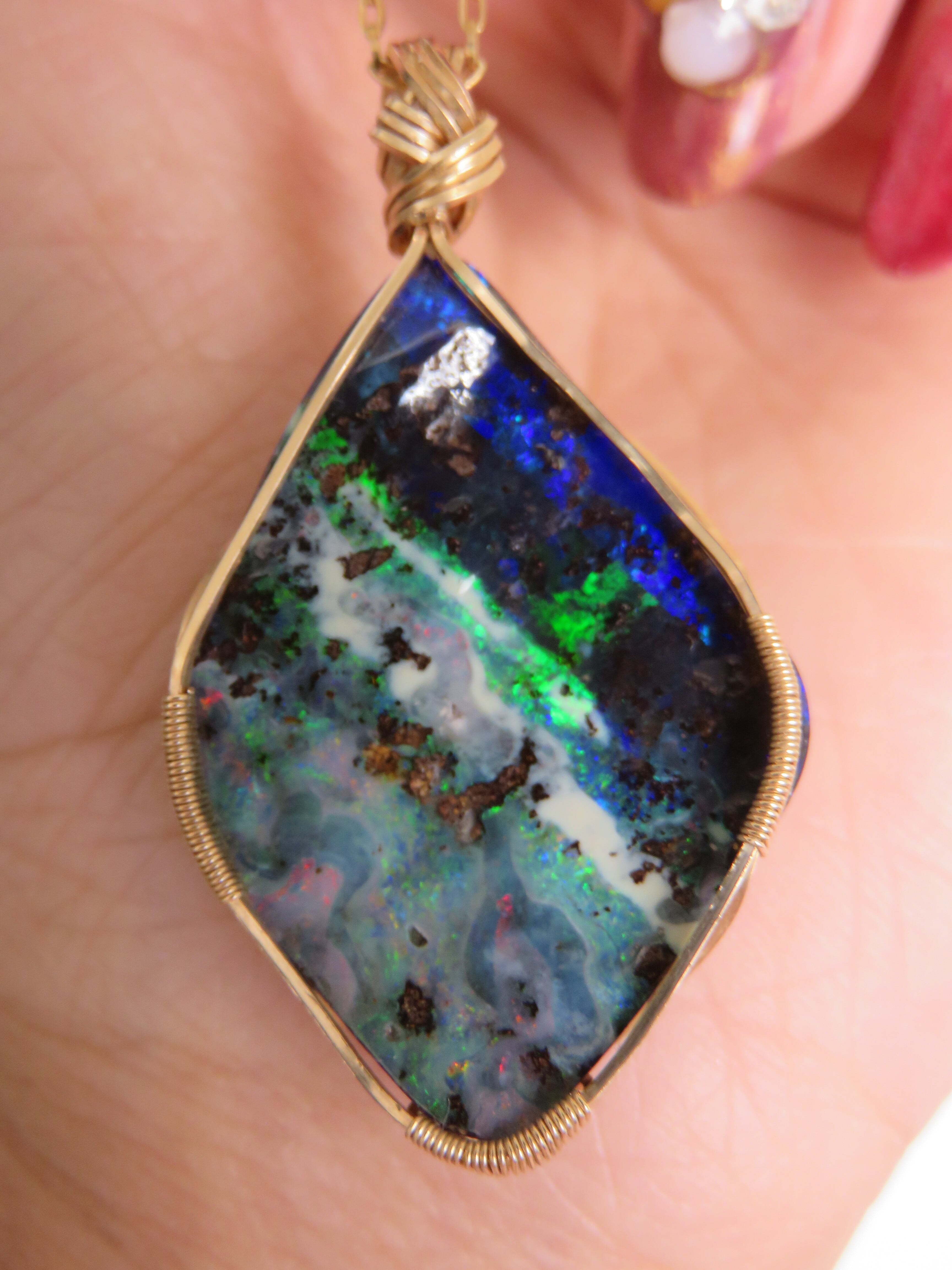 大粒で特別な美しさのオーストラリア産のボルダーオパール(23.1ct)を女神巻き®︎ペンダントトップに仕立てました。