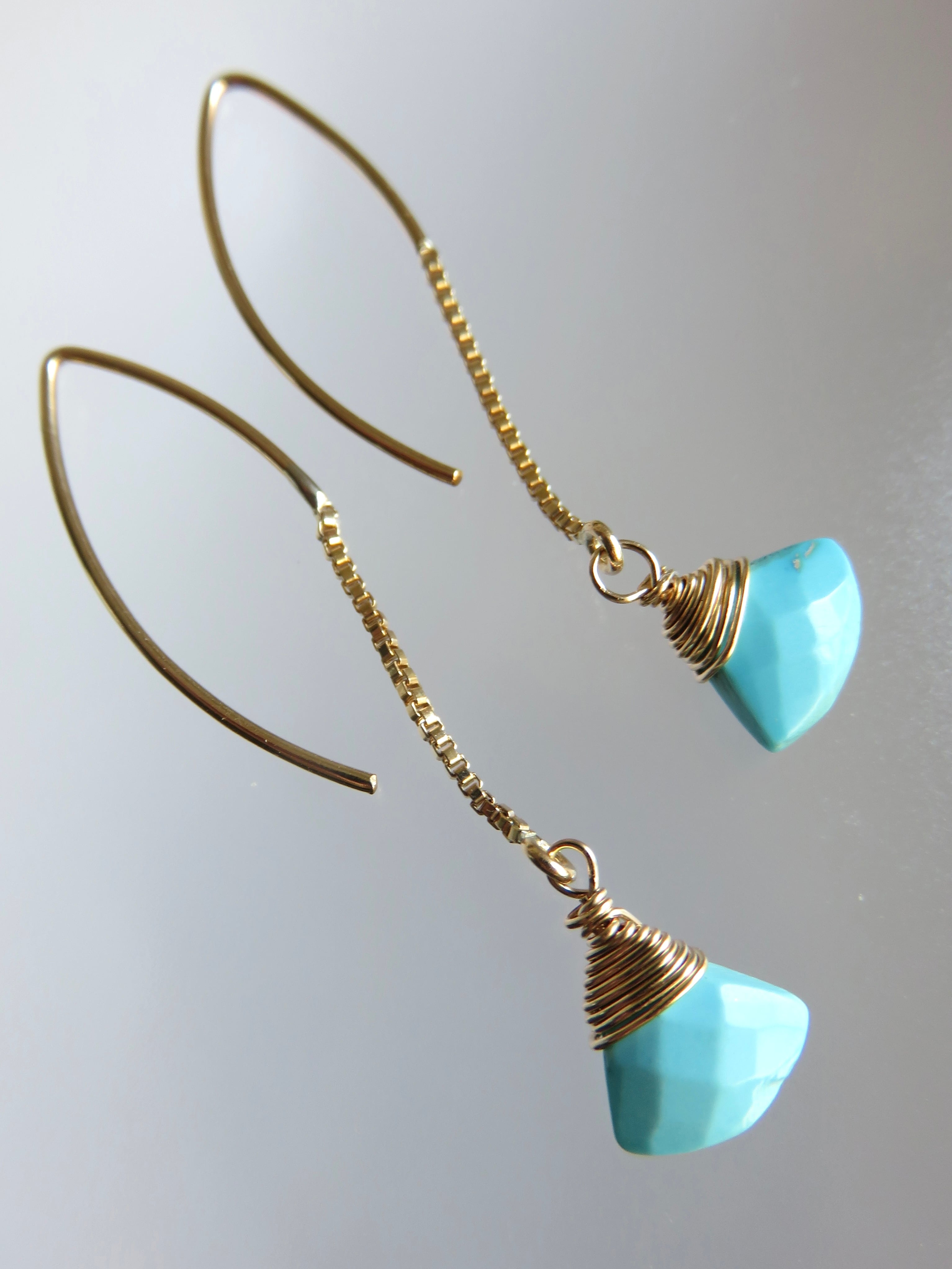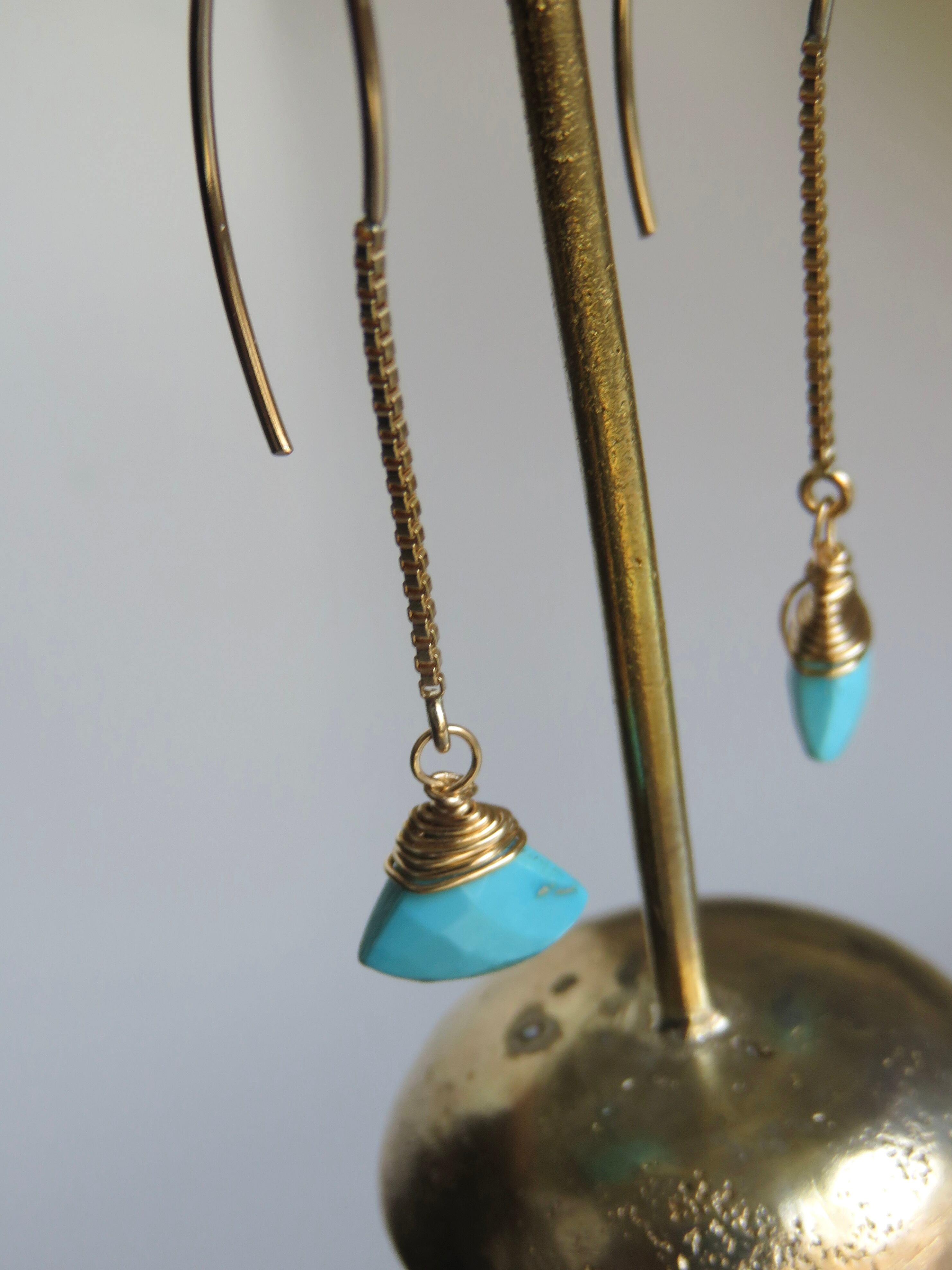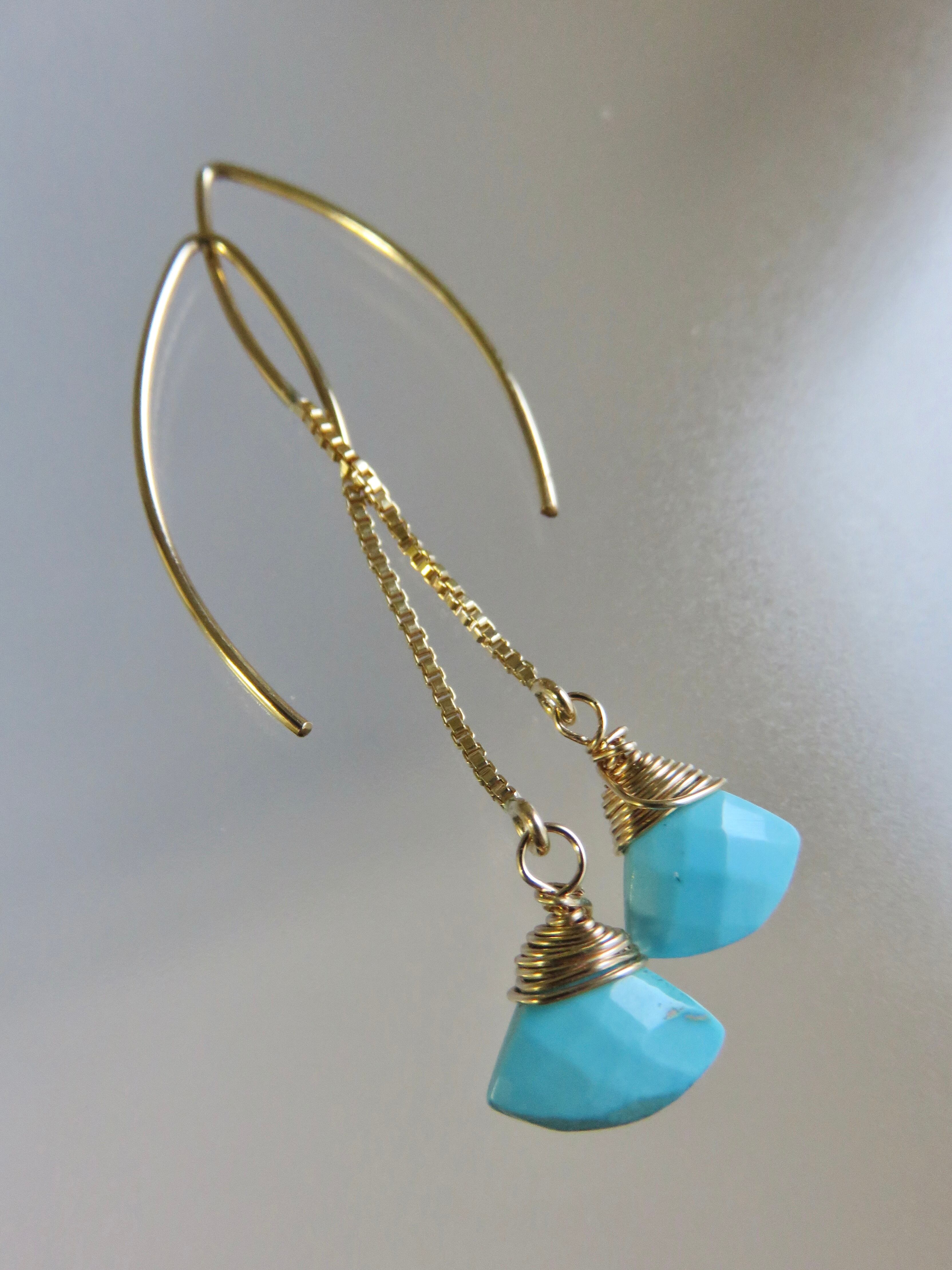 アメリカのスリーピングビューティー産ターコイズを使用したシンプルなピアスです。