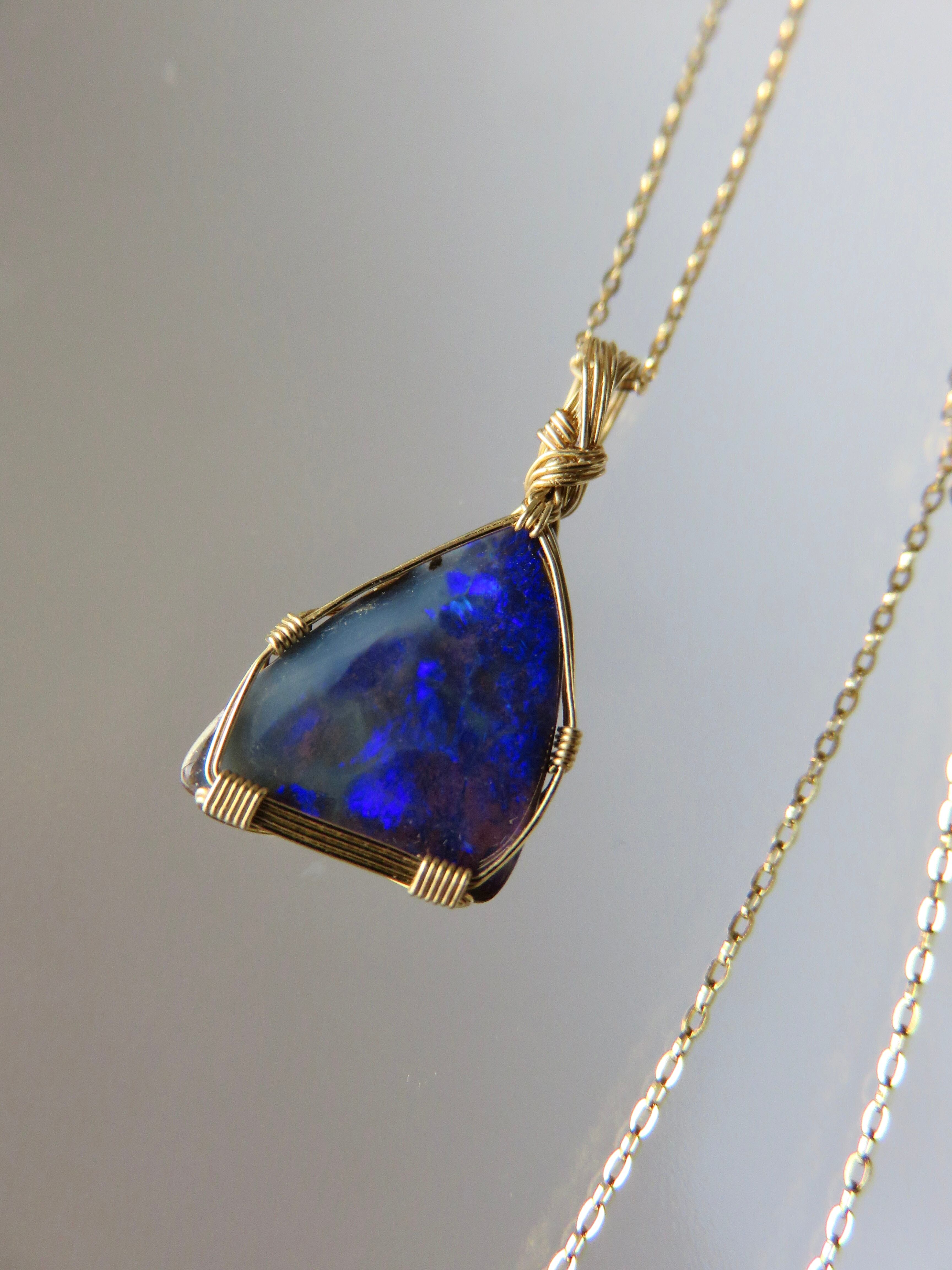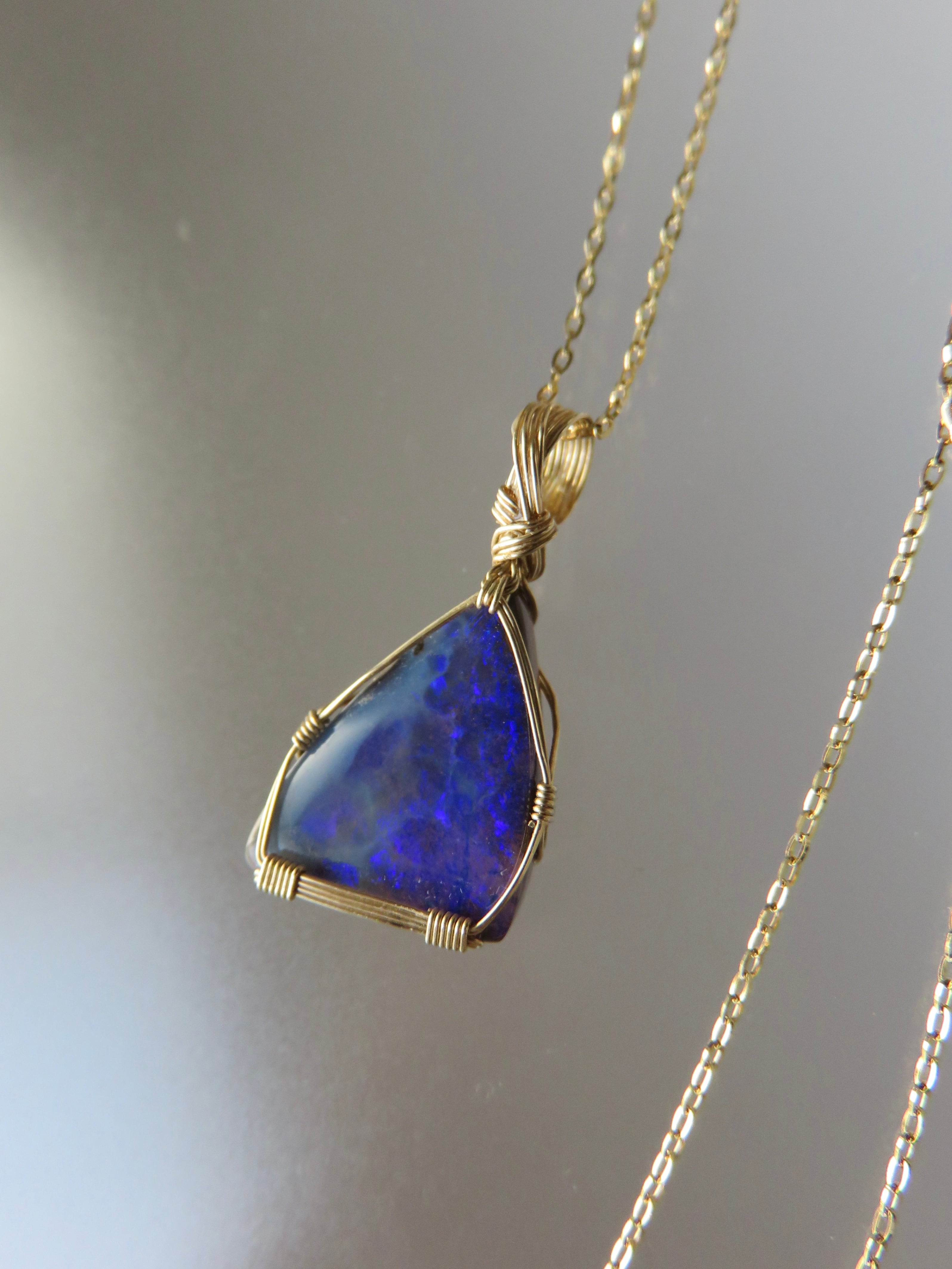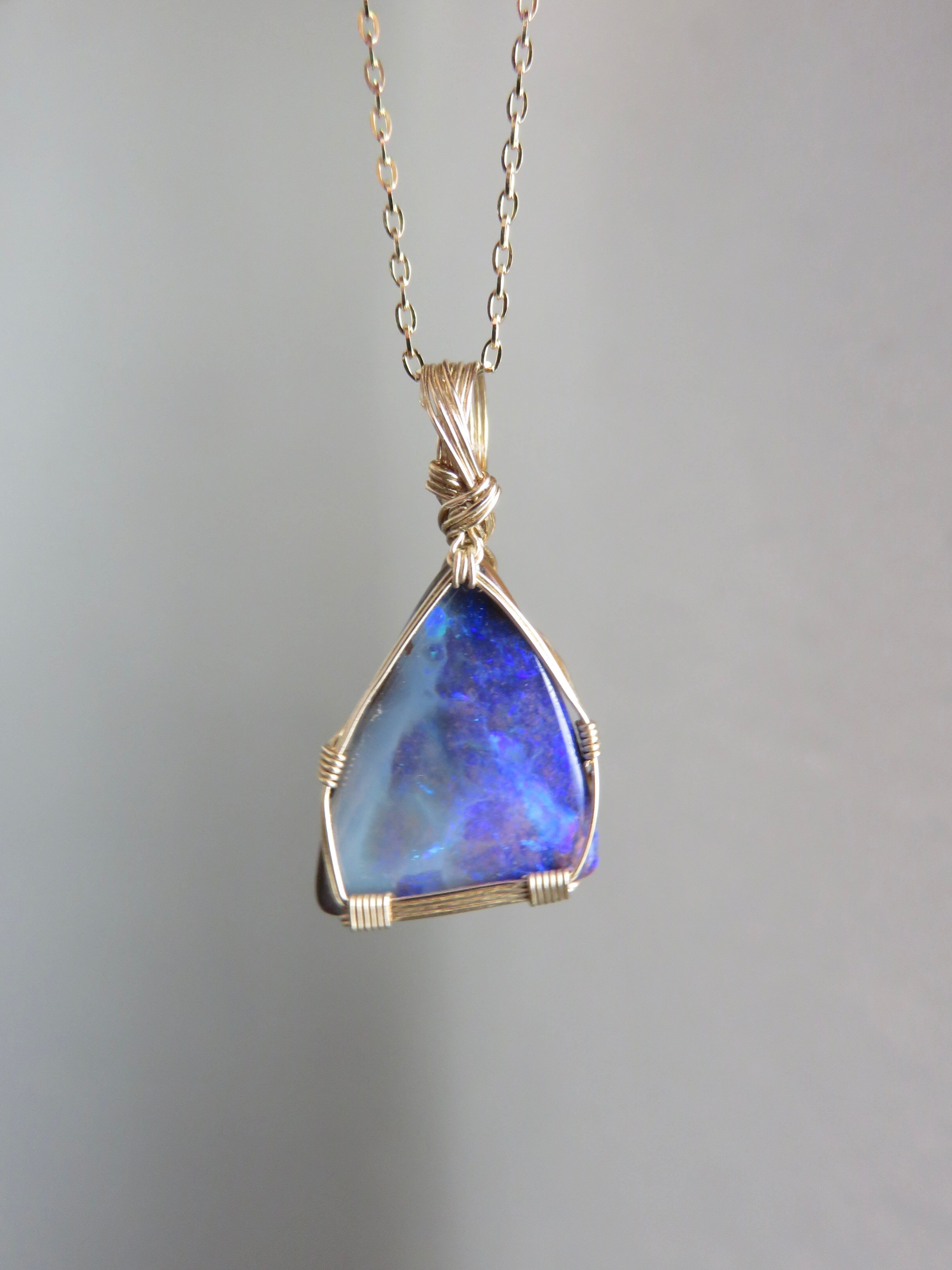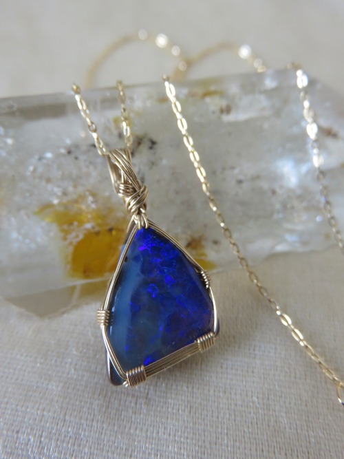 小さな海のようなオーストラリア産ボルダーオパールを女神巻きペンダントトップに仕立てました。